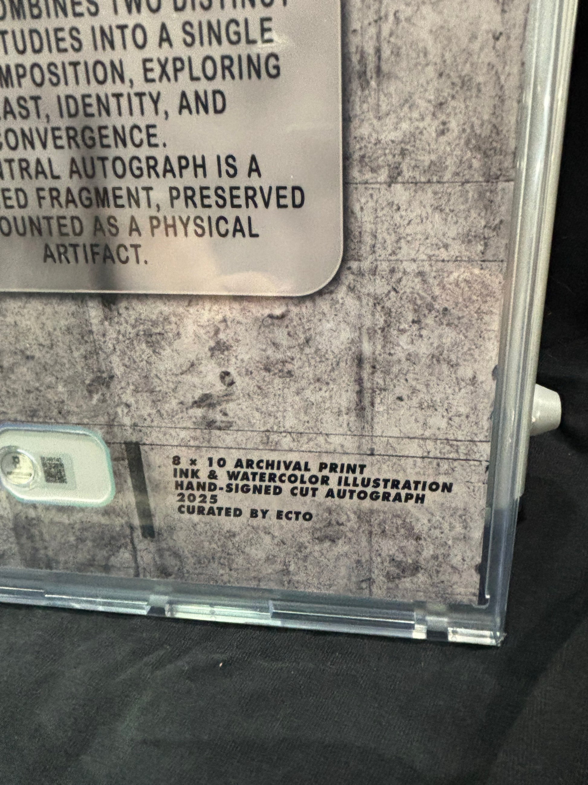 At the center is a hand-signed cut autograph, professionally preserved and mounted as a physical artifact.
