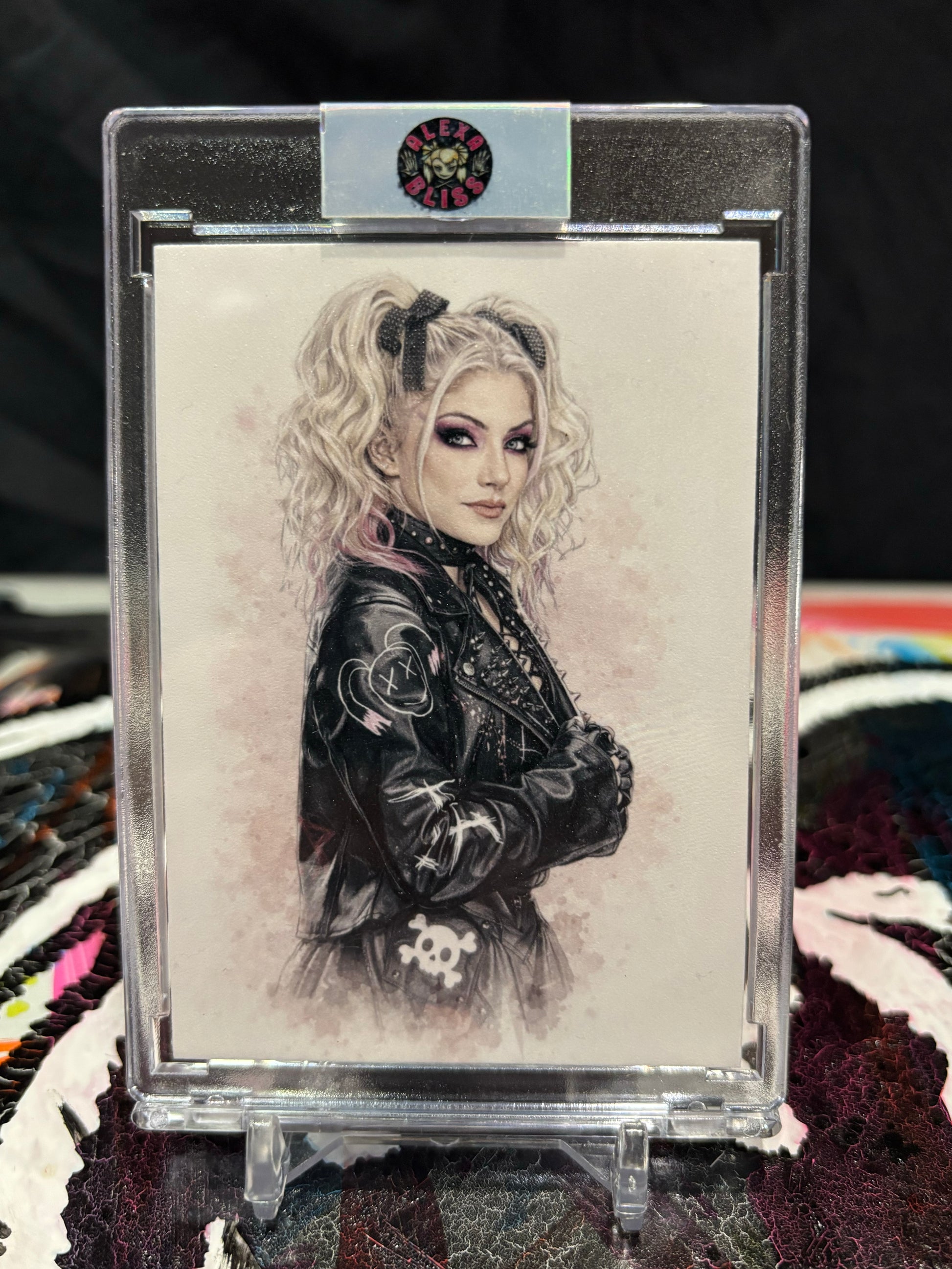 This listing is for a one-of-one, fully assembled mixed-media art work centered around Alexa Bliss, conceived and executed as a single, cohesive display piece rather than a standalone autograph or trading card.