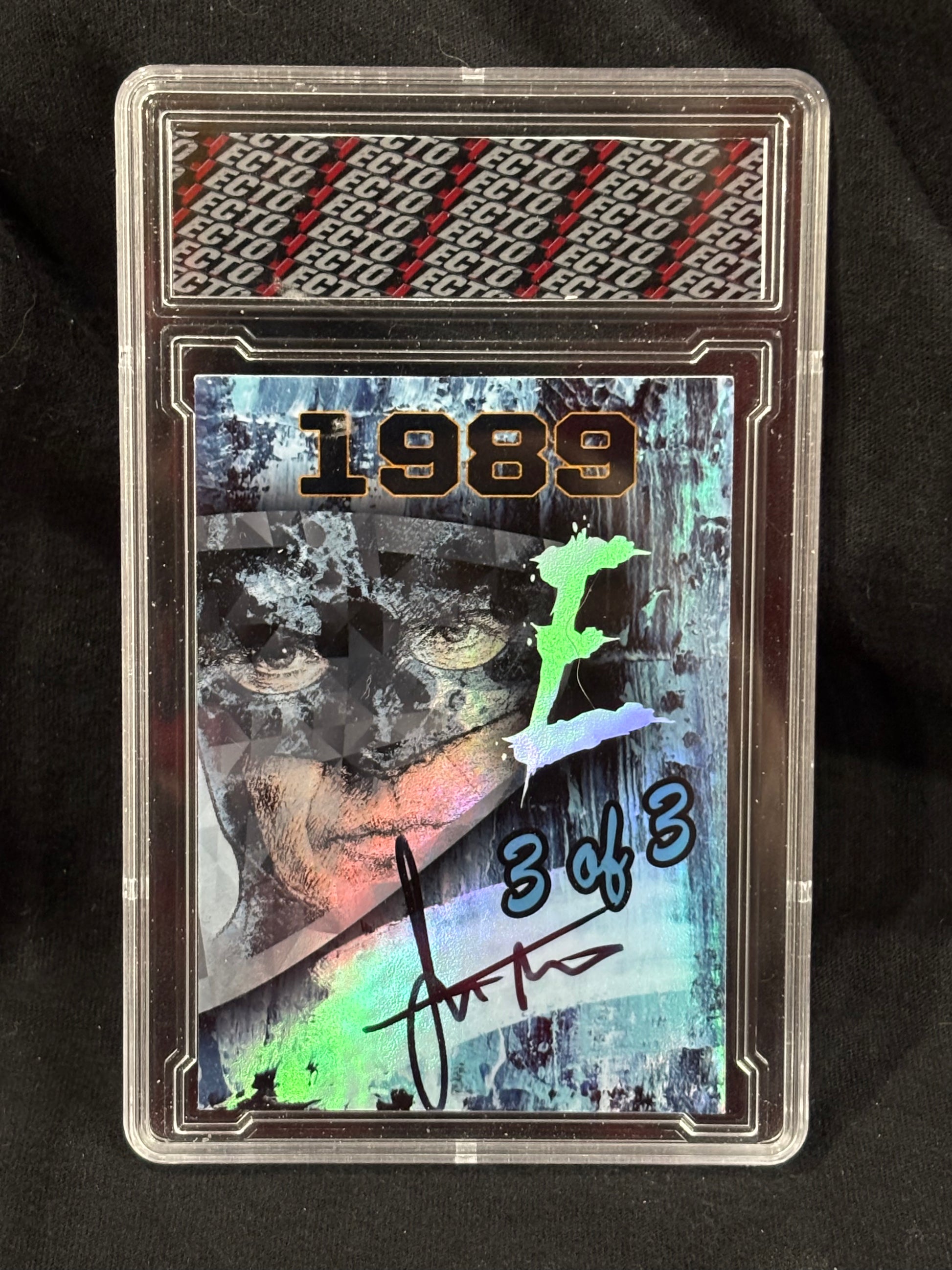Mini Cards (standard trading card size) come sealed inside a custom acrylic slab with Ecto holo label.