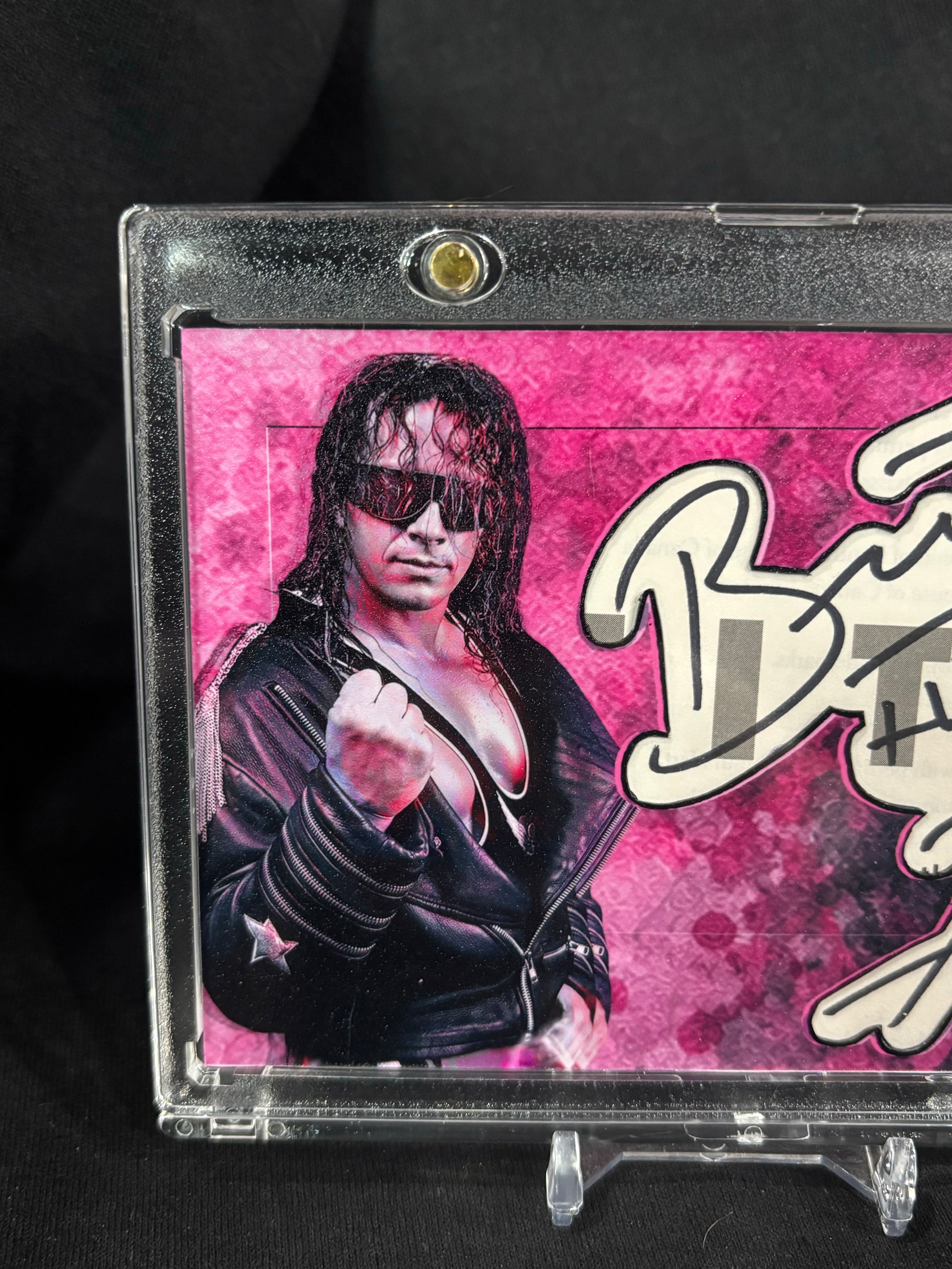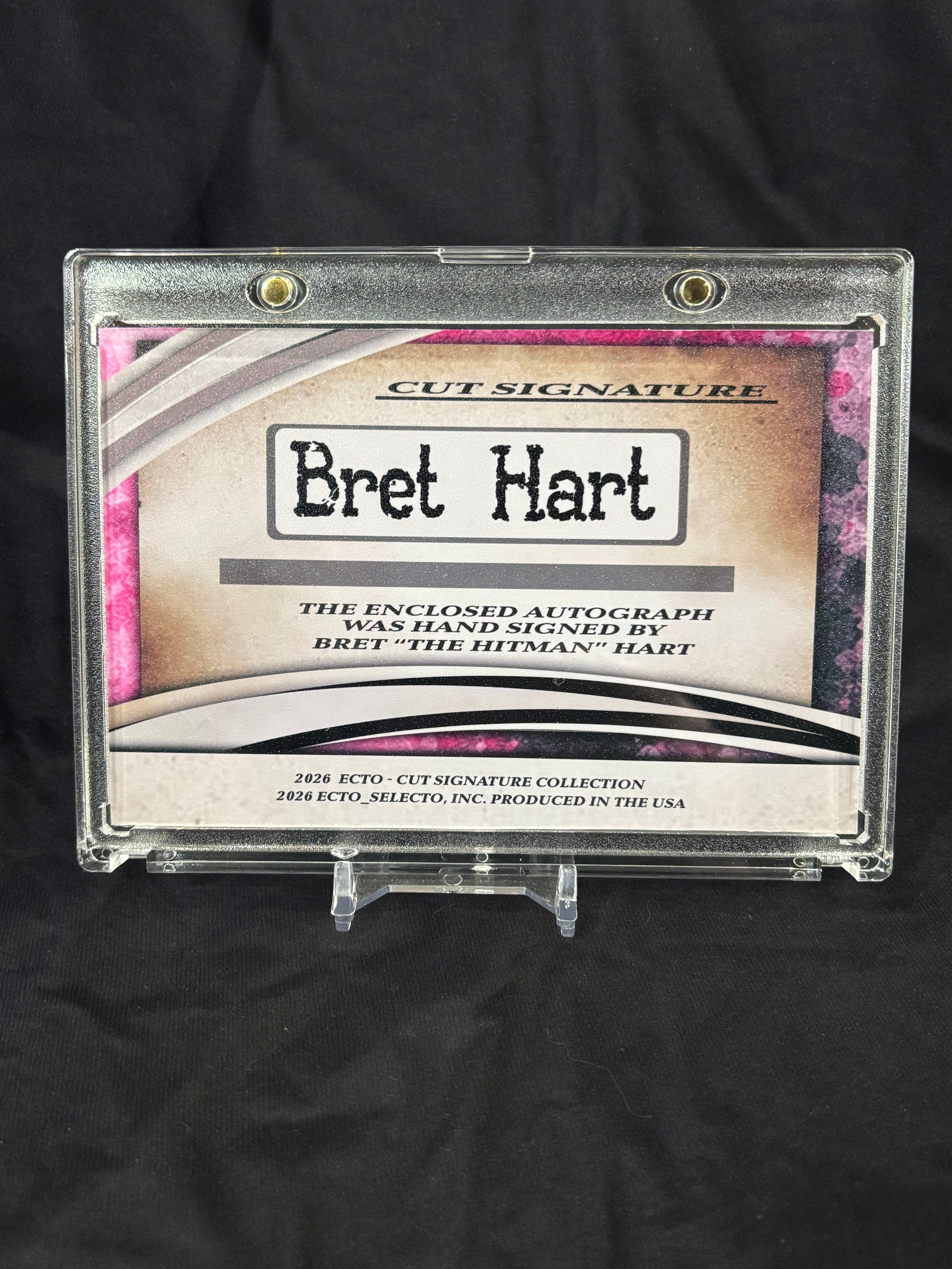 This is a one-of-one, art-forward cut signature presentation featuring WWE legend Bret “The Hitman” Hart, created as part of the ECTO Selecto Cut Signature Collection.