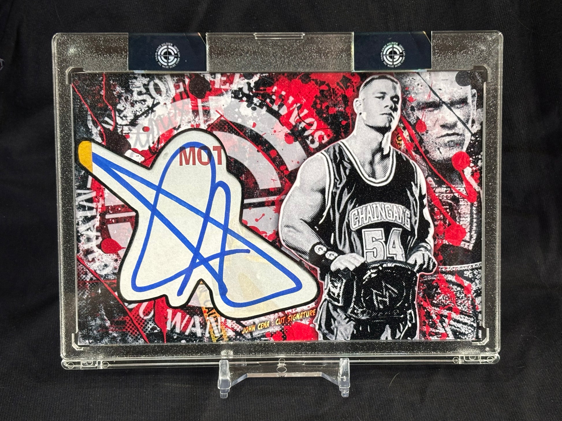 This one-of-one John Cena cut signature has been transformed into a bold urban contemporary pop-art composition.