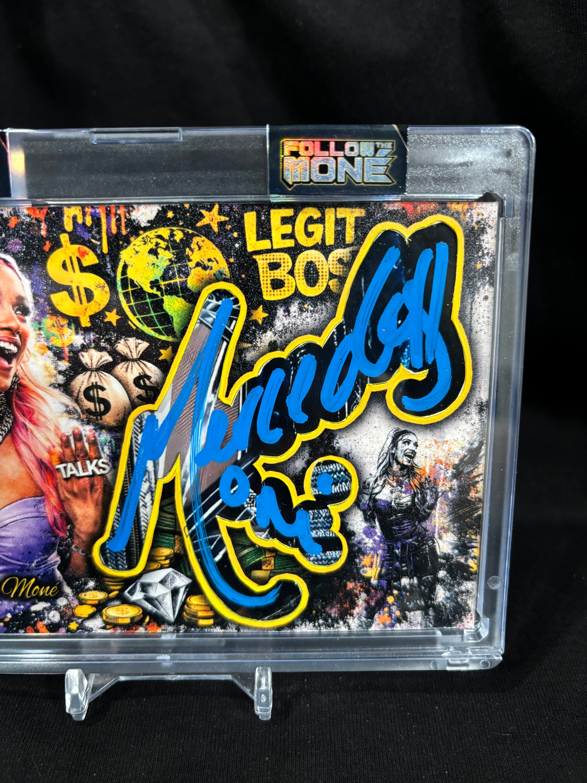 This is a true one-of-one (1/1) custom art card featuring an authentic Mercedes Moné autograph, carefully preserved and presented as a premium, art-forward collectible.