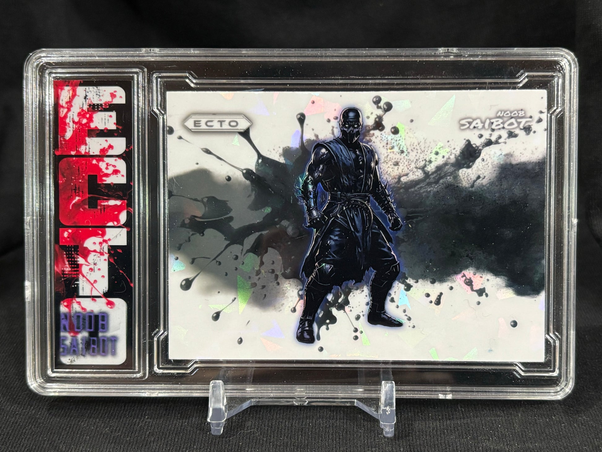 This release reimagines Noob Saibot as if he appeared in a forgotten early-90s trading card run — a mass-produced artifact that shouldn’t exist, recovered and preserved.